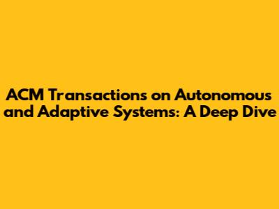 The Role of ACM Transactions on Autonomous and Adaptive Systems