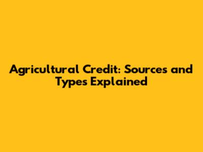 Types of Agricultural Credit