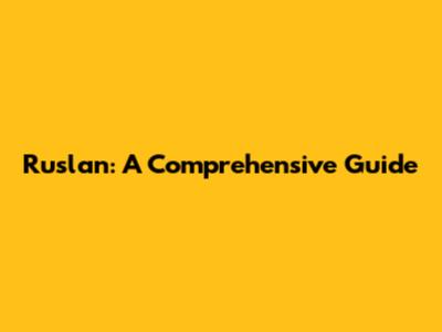 Ruslan: A Comprehensive Guide