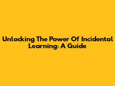 Unlocking The Power Of Incidental Learning: A Guide