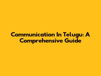 Communication In Telugu: A Comprehensive Guide