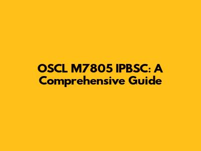OSCL M7805 IPBSC: A Comprehensive Guide