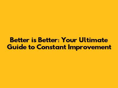 Why 'Better is Better' Matters in Life