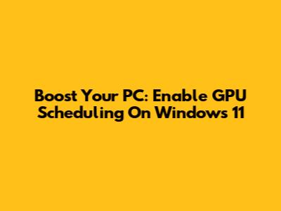 Boost Your PC: Enable GPU Scheduling On Windows 11