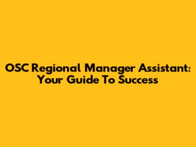 OSC Regional Manager Assistant: Your Guide To Success