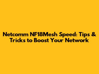 Boosting your Netcomm NF18Mesh speed involves understanding the factors that affect your network's performance and taking proactive steps to optimize your setup. By following the tips and tricks outlined in this guide, you can significantly improve your Wi-Fi experience and enjoy faster, more reliable internet throughout your home. Remember to regularly monitor your network's performance and make adjustments as needed to ensure optimal speed and stability. Good luck, and happy surfing!