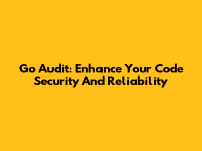 Go Audit: Enhance Your Code Security And Reliability