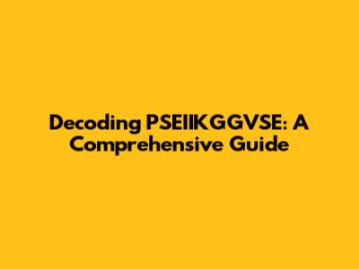 Decoding PSEIIKGGVSE: A Comprehensive Guide