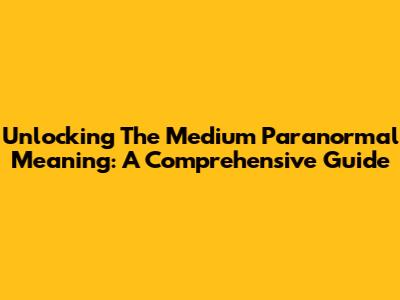 Unlocking The Medium Paranormal Meaning: A Comprehensive Guide
