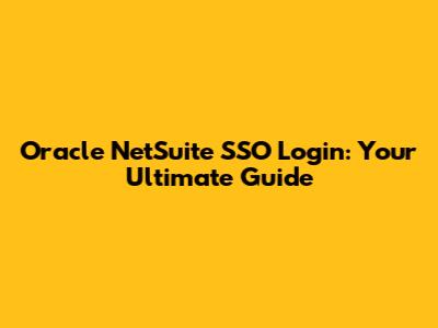 Oracle NetSuite SSO Login: Your Ultimate Guide