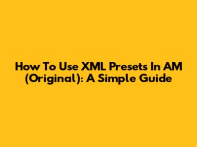 How To Use XML Presets In AM (Original): A Simple Guide