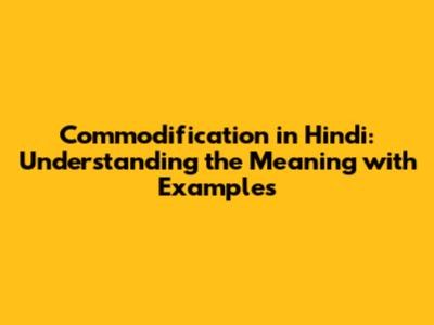 Commodification in Hindi: A Deeper Dive