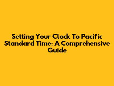 Setting Your Clock To Pacific Standard Time: A Comprehensive Guide