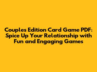 Hey guys! Are you looking for a fun and creative way to reconnect with your partner? Do you want to add some spark and excitement to your relationship? If so, then a couples edition card game PDF might be just what you need! In this article, we'll dive into the world of card games designed specifically for couples, exploring their benefits, different types available in PDF format, and how to choose the perfect one for you and your loved one. Get ready to shuffle, deal, and laugh your way to a stronger, more intimate connection!
