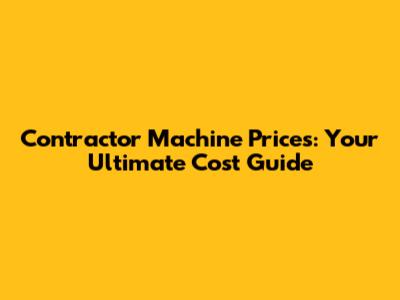 Contractor Machine Prices: Your Ultimate Cost Guide
