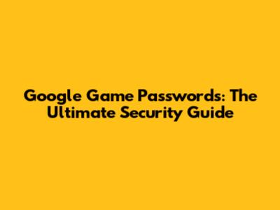 Google Game Passwords: The Ultimate Security Guide