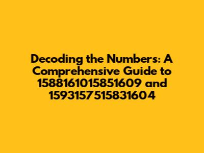 umbers can often seem like a jumble, but understanding what they represent can unlock a world of insights. In this article, we're diving deep into the mysterious number sequences 1588161015851609 and 1593157515831604. We’ll break down possible interpretations, explore potential contexts, and provide you with a clearer understanding of these enigmatic codes. Whether you stumbled upon these numbers in a document, a dream, or a digital space, this guide is designed to shed light on their meaning and significance. Let's get started and unravel the secrets behind these numerical strings!