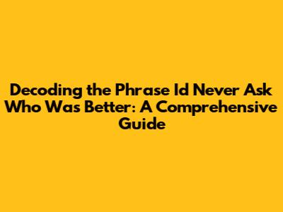 Have you ever stumbled upon the phrase "I'd never ask who was better" and wondered what it truly means? Well, you're not alone! This seemingly simple statement carries a lot of weight and nuance, often hinting at deeper sentiments. In this article, we're diving deep into understanding its various interpretations, contexts, and the emotional intelligence behind it. So, buckle up and let's decode this intriguing phrase together, guys!