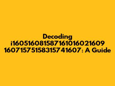 Alright, guys, let's dive into this intriguing string: i160516081587161016021609 16071575158315741607. At first glance, it might seem like a random jumble of numbers, but there's likely a method to the madness. In this article, we're going to break down the possibilities, explore potential meanings, and provide some context to help you understand what this string could represent. Whether it's a code, an identifier, or something else entirely, we'll explore various angles to shed some light on this mysterious sequence.