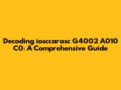 Hey guys! Ever stumbled upon a cryptic alphanumeric code and felt like you're trying to decipher an alien language? Well, today we're diving deep into one of those mysterious strings: iosccarasc G4002 A010 C0. This guide will break down what this code might mean, where you might encounter it, and why it's important. We'll explore potential contexts, from manufacturing to software, and provide insights to help you understand its significance. So, buckle up, and let's get started on this decoding adventure!