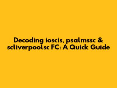 Hey guys! Ever stumbled upon some weird acronyms or abbreviations online and felt totally lost? Today, we’re diving into the cryptic world of "ioscis," "psalmssc," and "scliverpoolsc FC." These might seem like random strings of characters, but they could be related to specific organizations, teams, or even inside jokes. Let’s break them down and see if we can make some sense of it all. Understanding these terms not only helps in decoding online conversations but also enhances your overall knowledge, especially if they are tied to particular communities or interests you follow. It’s like learning a new language, where each acronym unlocks a new level of understanding. So, grab your decoder rings, and let’s get started!