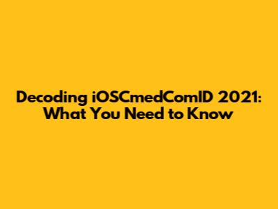 What You Need to Know About iOSCmedComID 2021
