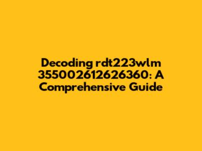 The string "rdt223wlm 355002612626360" could represent a variety of things depending on the context. Here are a few possibilities: