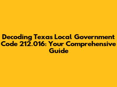 Hey everyone! Ever wondered what's up with Texas Local Government Code 212.016? Well, you're in the right place! This code section plays a vital role in how cities and towns in Texas handle subdivision regulation and, trust me, it's more interesting than it sounds. This article breaks down the ins and outs of this code, making it easy to understand, even if you're not a legal eagle. We'll explore what it covers, why it matters, and how it impacts your community. Get ready to dive in – it's going to be a fascinating journey through the world of local government!