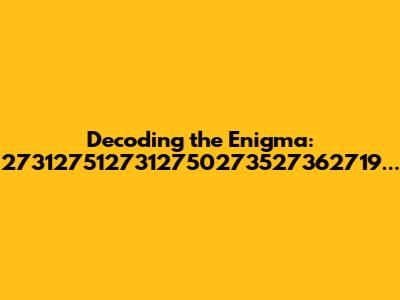 - Repetition: The repetition of “27” and “2731” suggests a pattern or a key. It could indicate a repeating cycle within the data.