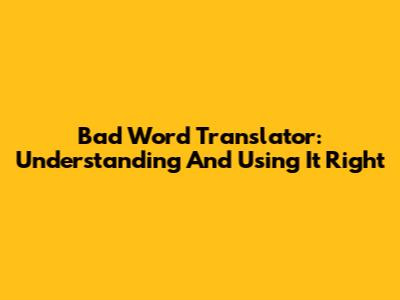 Bad Word Translator: Understanding And Using It Right