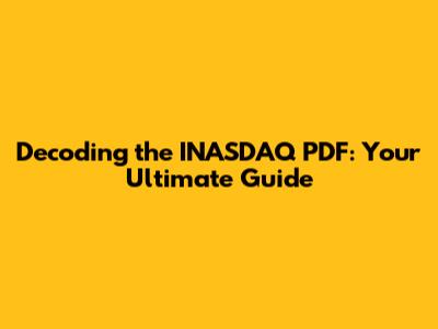Decoding the INASDAQ PDF: What to Expect