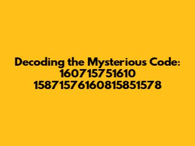Alright, let's get our detective hats on! When we see a string of numbers like 160715751610 15871576160815851578, the first thing that pops into mind is, what could it possibly be? There are several common possibilities, and we'll break them down. Sometimes, these sequences are straightforward, and other times, they require a bit more digging. It is also important to note that the context is a key element of the meaning. We're going to consider a few common possibilities: