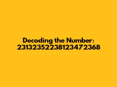 Alright guys, let's dive into something a bit… numerical today. We're tackling the beast that is the number 23132352238123472368. Now, I know what you're thinking: “What on earth am I supposed to do with that?” Well, buckle up, because we're going to break it down. This isn't just about staring blankly at a huge number; it's about understanding how numbers like these pop up, where they might be used, and why they even matter. So, grab your metaphorical calculator (or just use the one on your phone, no judgment), and let's get started!