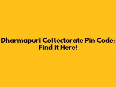 Finding the Dharmapuri Collectorate Pin Code: Your Go-To Guide