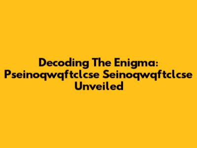 Decoding The Enigma: Pseinoqwqftclcse Seinoqwqftclcse Unveiled