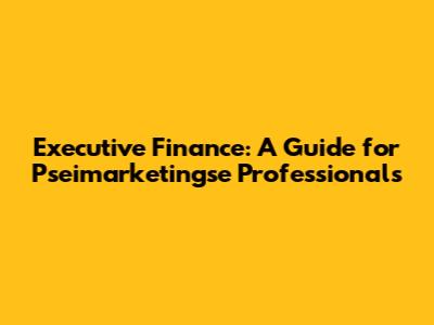 Hey guys! Ever wondered how finance works, especially in the context of pseimarketingse? Let's break it down. This guide is designed to give you a solid understanding of executive finance, tailored specifically for those in the pseimarketingse field. Whether you're a seasoned executive or just starting out, grasping these financial concepts is crucial for making informed decisions and driving your company's success.