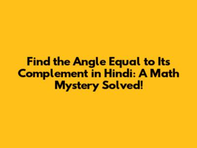 For all our Hindi-speaking friends out there, let's translate this cool math concept. The phrase "find the angle which is equal to its complement" translates to "वह कोण ज्ञात कीजिए जो अपने पूरक के बराबर हो" (Vah kon gyat kijiye jo apne purak ke barabar ho). The key terms here are: