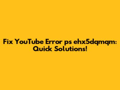 Hey guys! Having trouble with that pesky 'ps ehx5dqmqm' error on YouTube? Don't worry, you're not alone! This error can be super frustrating, but the good news is, it's usually pretty easy to fix. Let's dive into some quick solutions to get you back to watching your favorite videos in no time. We'll cover everything from basic troubleshooting steps to more advanced fixes, so stick around and let’s get this sorted out together!