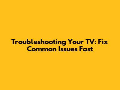 Troubleshooting Your TV: Fix Common Issues Fast