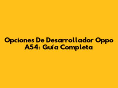 Opciones De Desarrollador Oppo A54: Guía Completa
