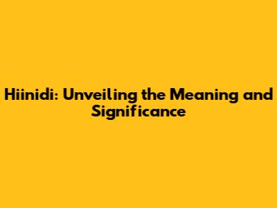 The Significance of Hiinidi in Modern Contexts