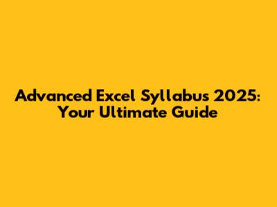 Advanced Excel Syllabus 2025: Your Ultimate Guide