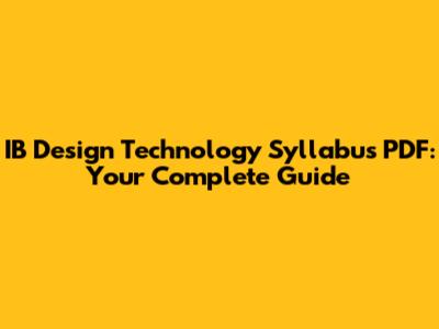 How to Effectively Use the IB Design Technology Syllabus PDF