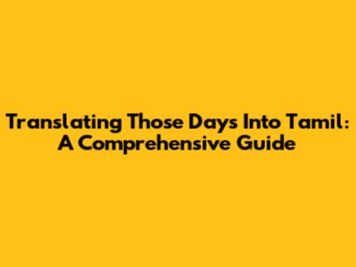 Translating 'Those Days' Into Tamil: A Comprehensive Guide