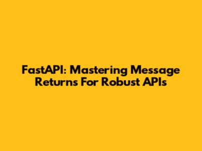 FastAPI: Mastering Message Returns For Robust APIs