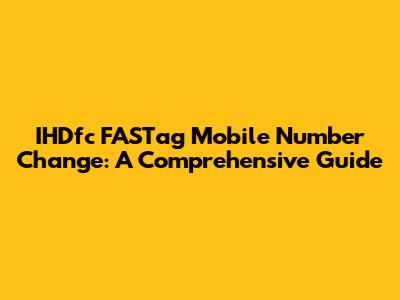 Hey guys! Ever found yourself needing to update your IHDfc FASTag mobile number? Maybe you've switched providers, got a new phone, or simply want to keep your info current. Whatever the reason, you're in the right place! Changing your IHDfc FASTag mobile number is a pretty straightforward process, but it's super important to get it right. After all, your FASTag is linked to your vehicle and is used for automatic toll payments on highways across India. Incorrect details can lead to all sorts of issues, from payment failures to difficulties in managing your FASTag account. So, let's dive into how you can easily and effectively change your mobile number associated with your IHDfc FASTag. We'll cover everything from the steps involved to the documents you'll need, and even some helpful tips to make the whole process smooth sailing. Trust me, it's way easier than you might think, and we'll break it down step-by-step to ensure you have no trouble at all. Let's get started and make sure your FASTag details are up-to-date!
