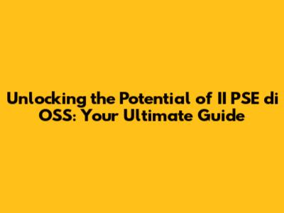 Unlocking the Potential of II PSE di OSS: Your Ultimate Guide