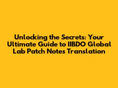 The Future of IIDBO Global Lab Patch Notes Translation