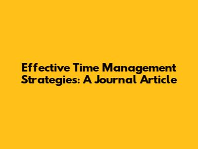 Effective Time Management Strategies: A Journal Article