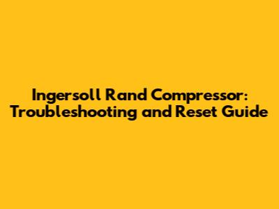Step-by-Step Ingersoll Rand Compressor Reset Guide